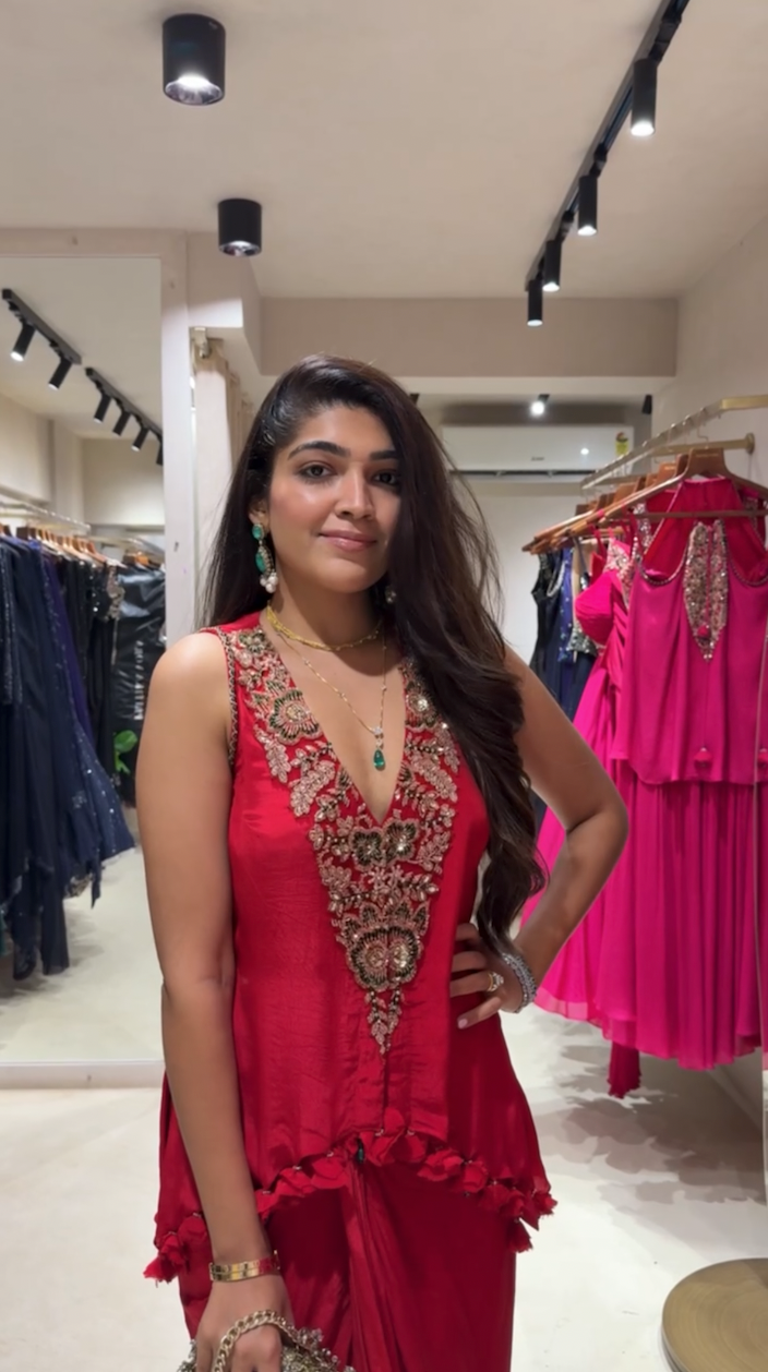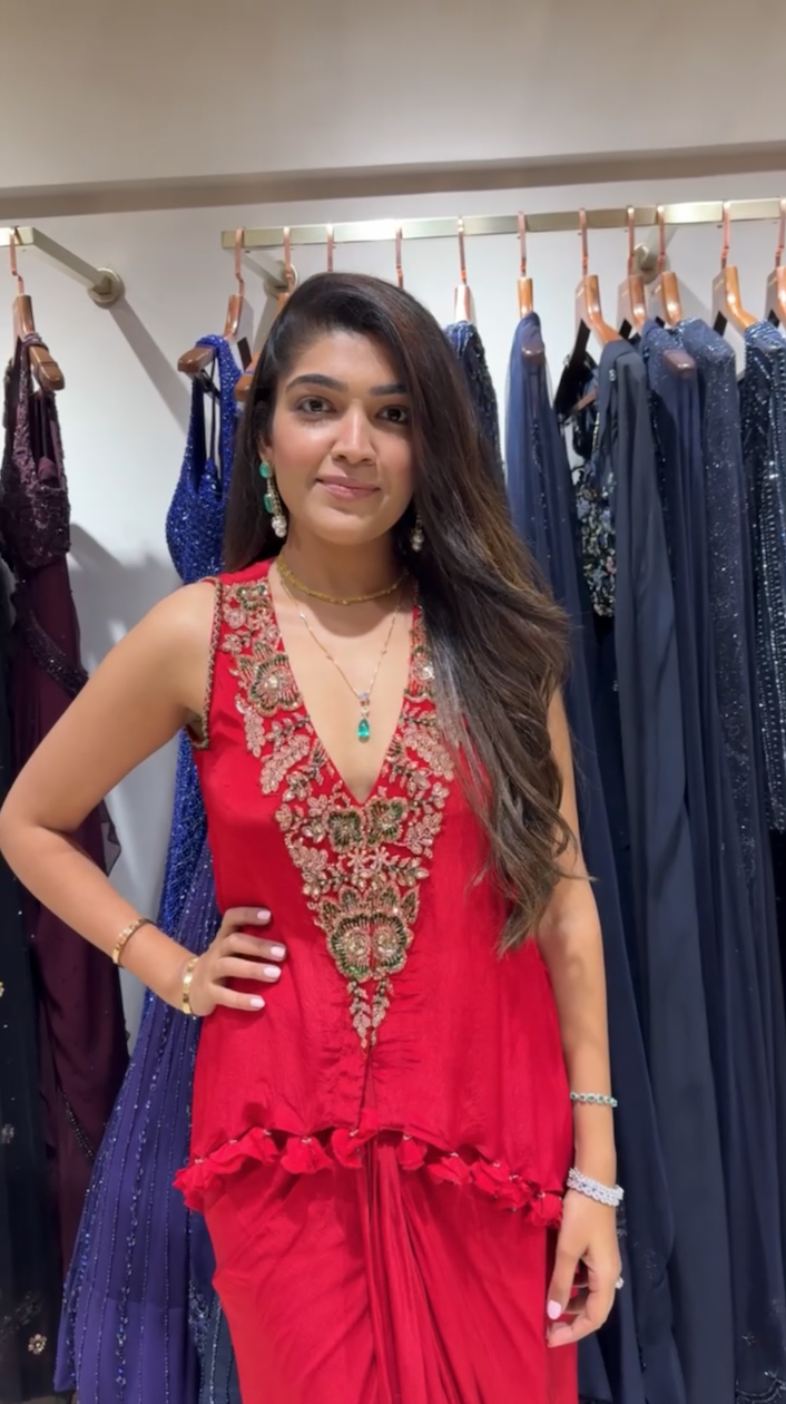 Please get in touch with us at +91 93261 09920 or email us at customercare@pritikavora.com in order to make a virtual appointment. A team member shall contact you via video call and show you the outfits and assist you with your order.