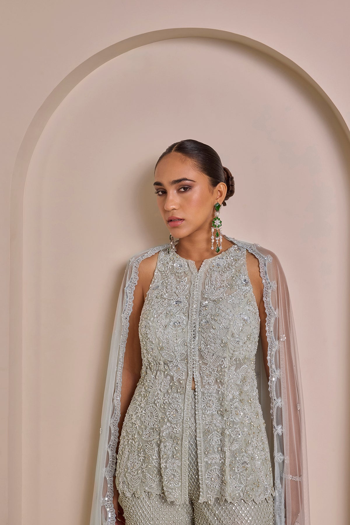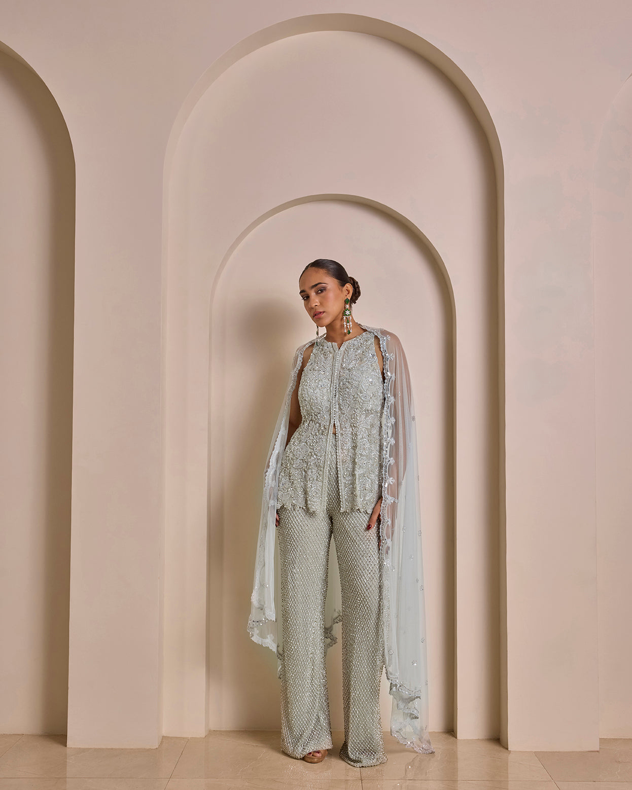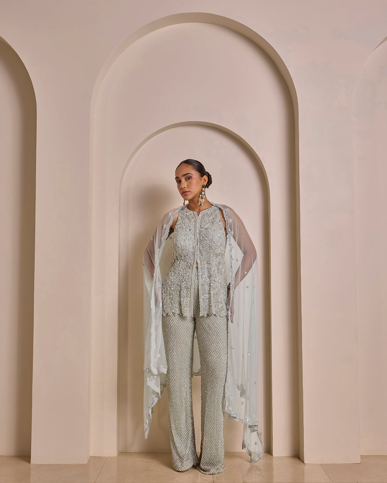 Grey Hand Embroidered Co-Ord Set with Dupatta