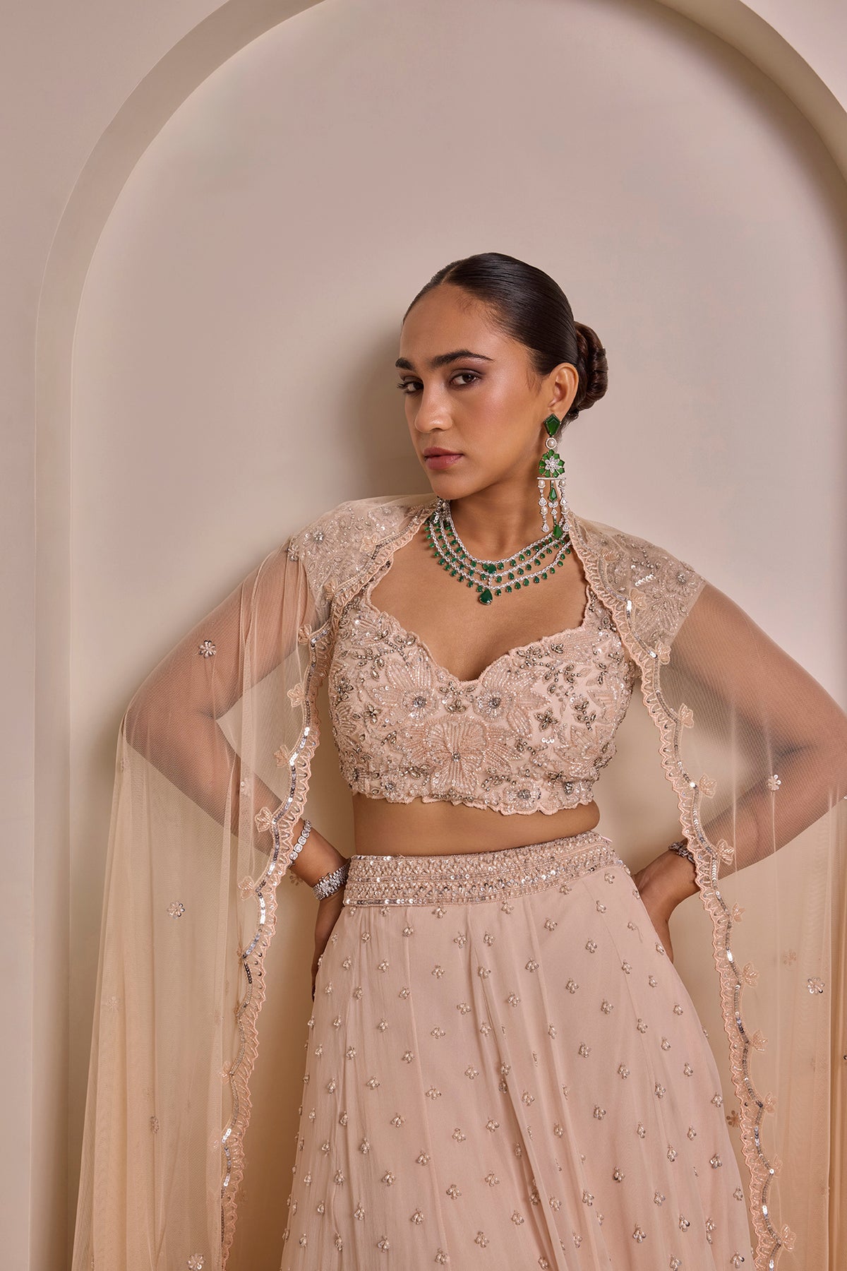 Embroidery: Sequin, cutdana, pearls, stones, beads