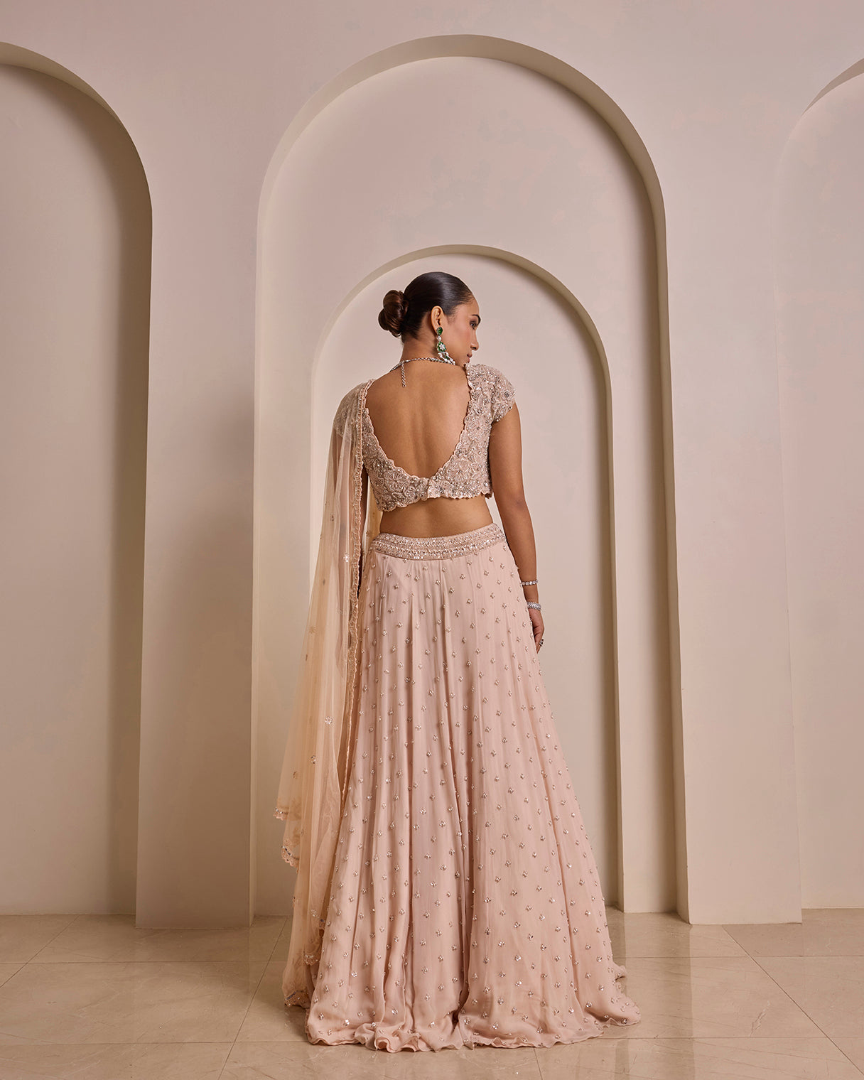Pastel Peach Pearl work Hand Embroidered Lehenga Set