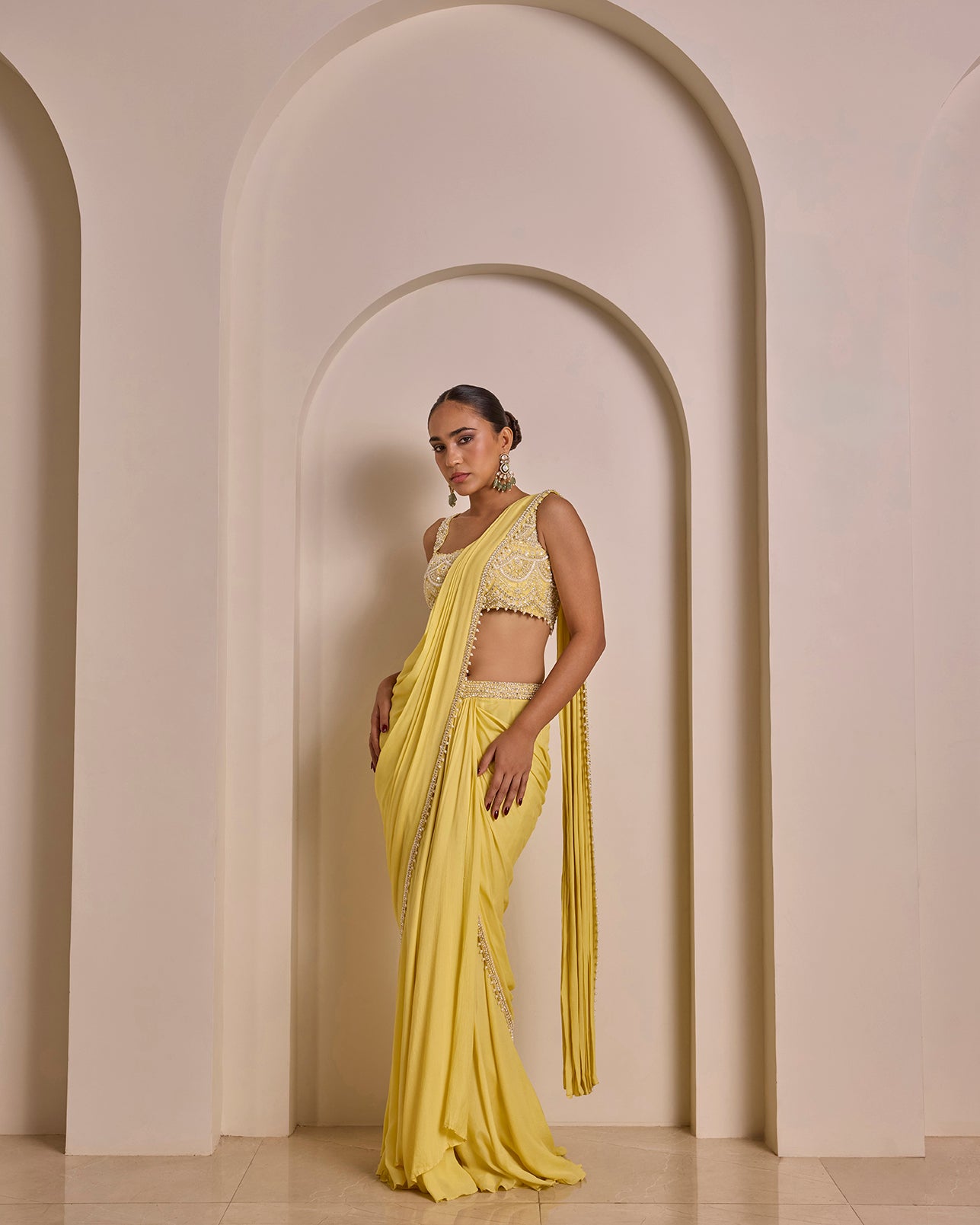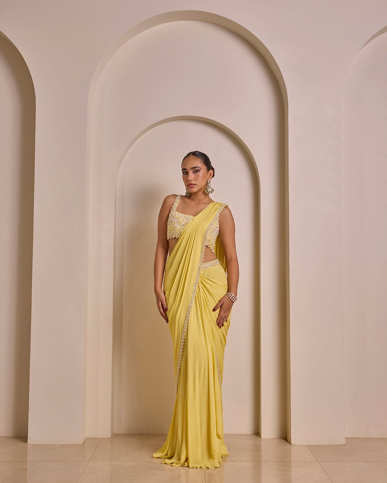 Pastel Yellow Saree Set